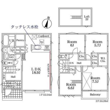 | 間取り(内訳) | 4LDK(洋7.5/6.6/6/5.7LDK18.9) | 建物面積 | 107.82㎡ |