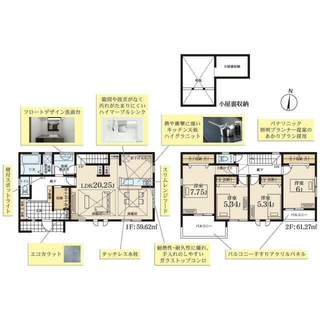 | 設備 | システムキッチン 床下収納 モニタ付インターホン ディンプルキー 浄水器 浴室乾燥機 追焚機能 シャワー付洗面化粧台 人感センサー付照明 ダウンライト 照明器具 | ||